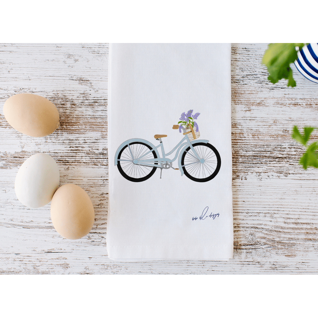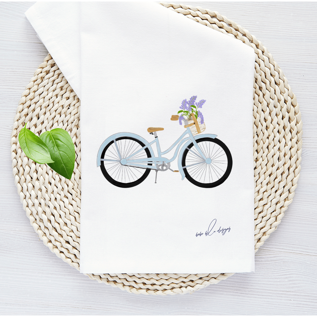 A Bicycle with Lilac Flour Sack Towel will be a wonderful way to bring summer inside!