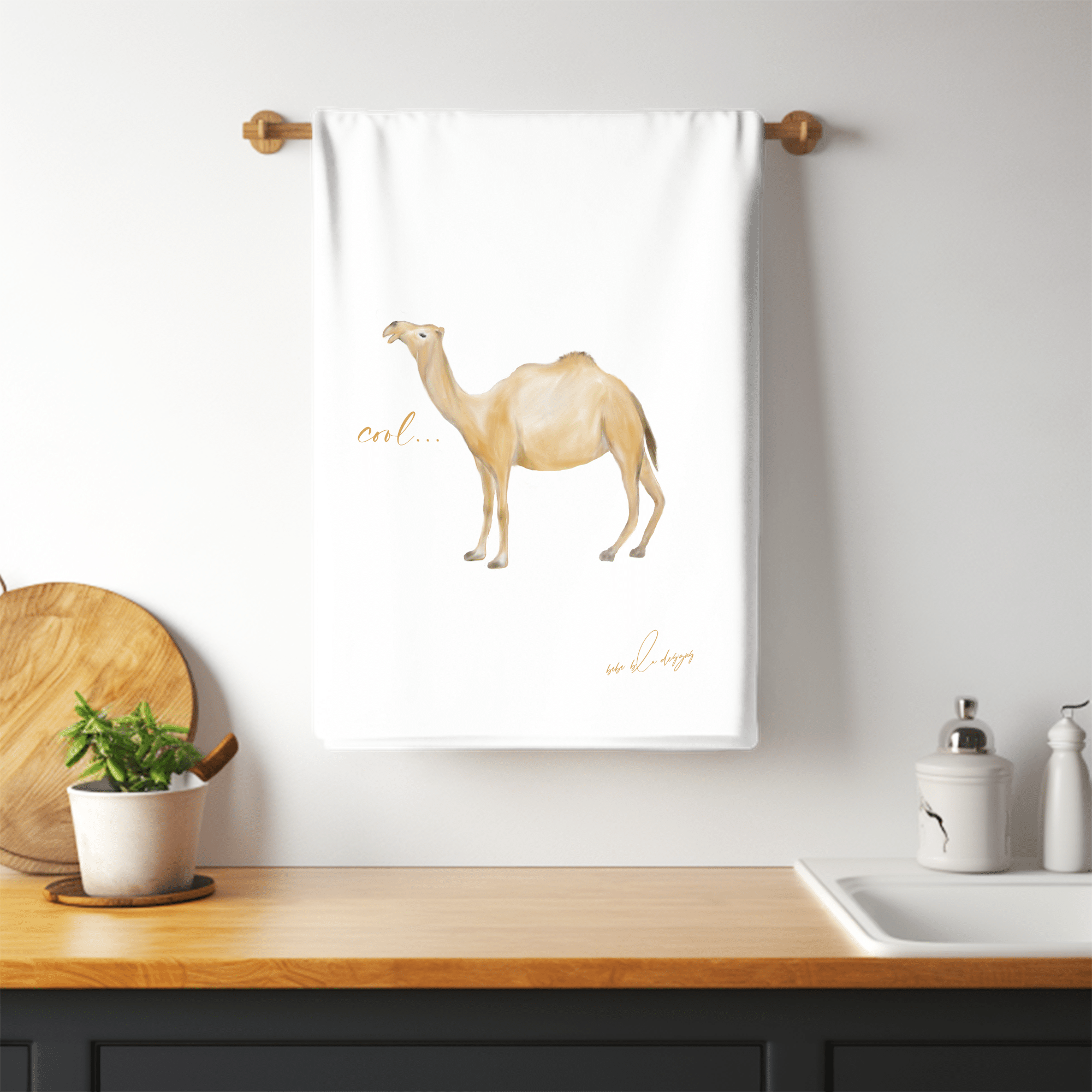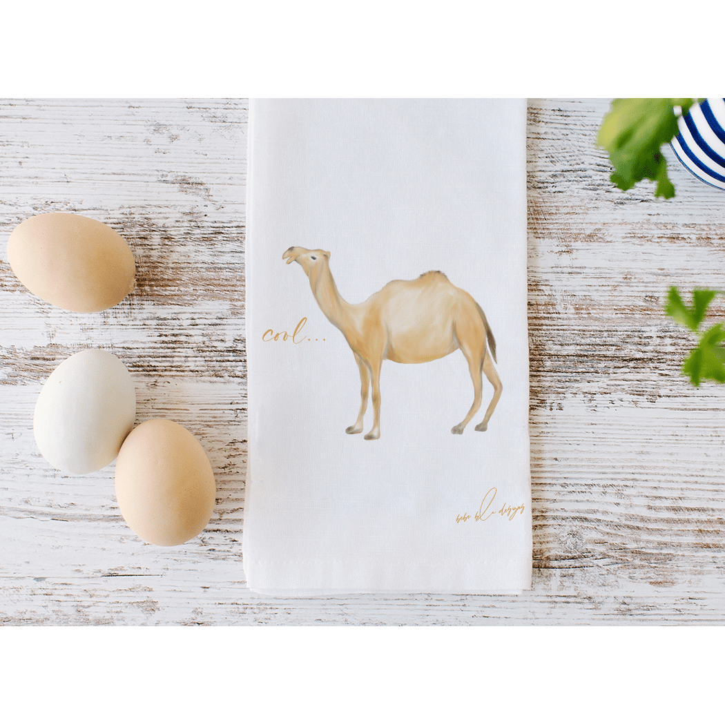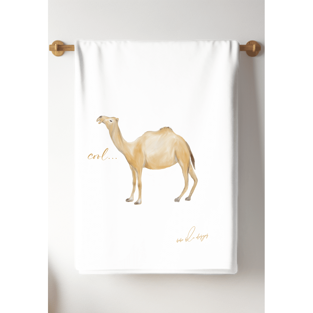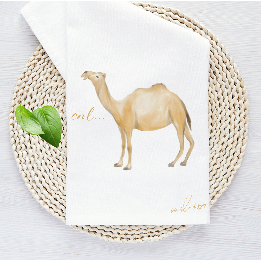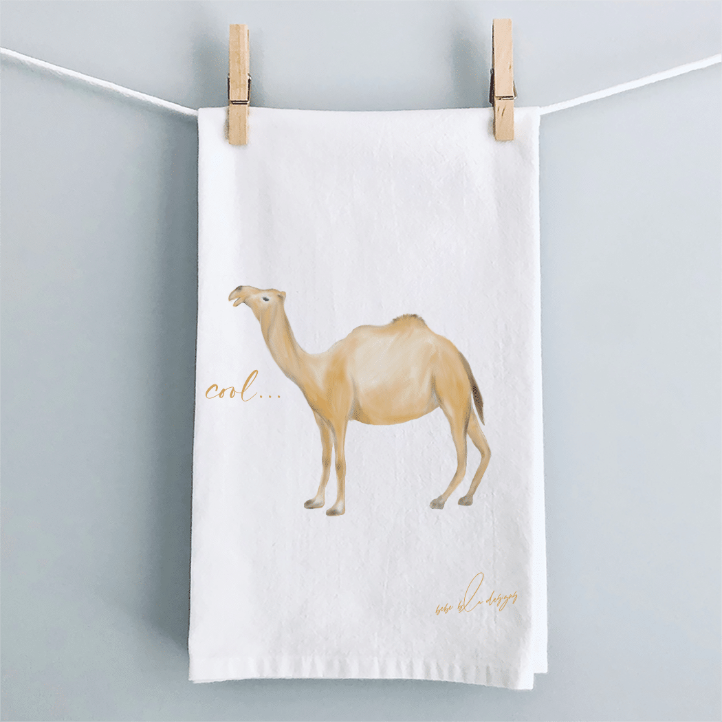 Camel ‘Cool’ Flour Sack Tea Towel… features an adorable Camel with the word ‘COOL.’ A cute and useful gift for any fun-loving friend. Use it to wrap a small gift making it two gifts in one. Who wouldn’t love a cool camel towel?
