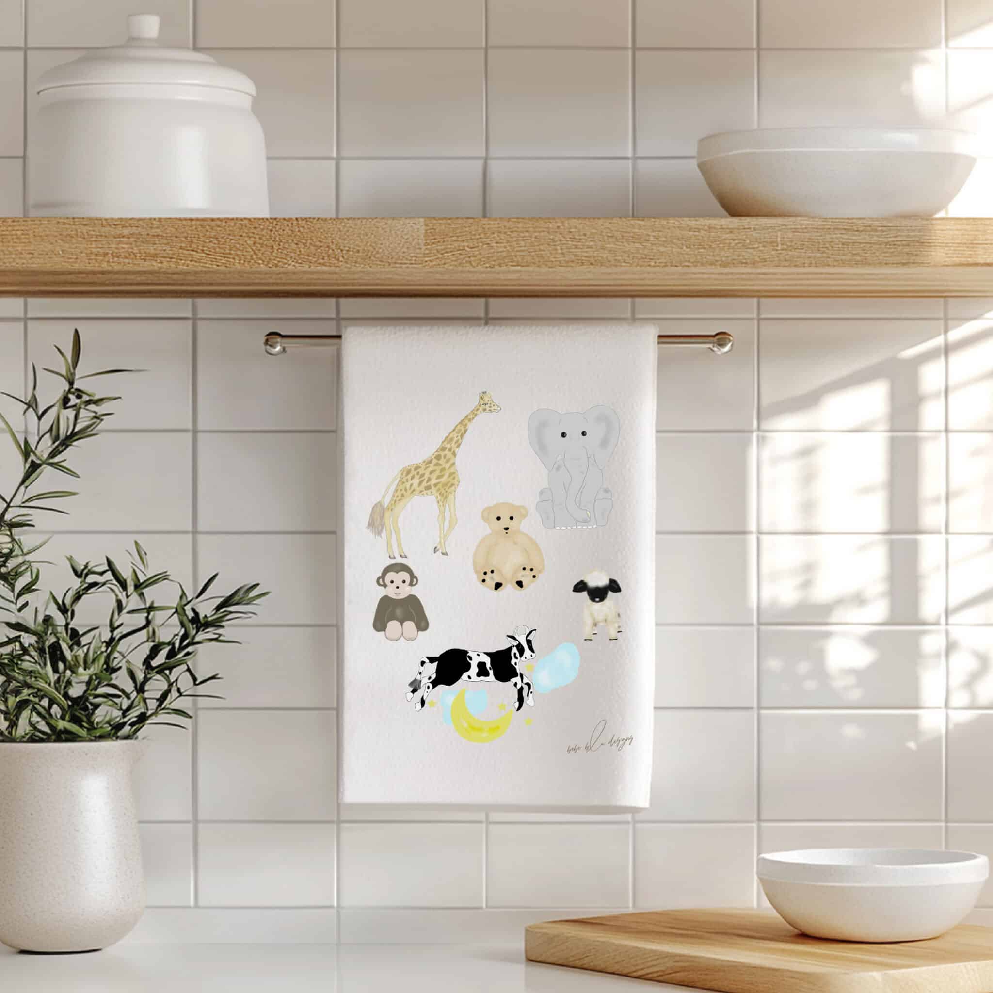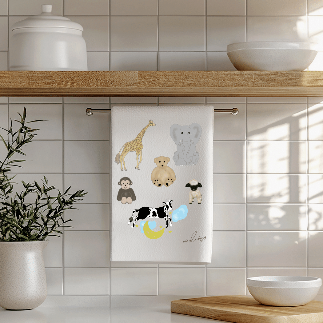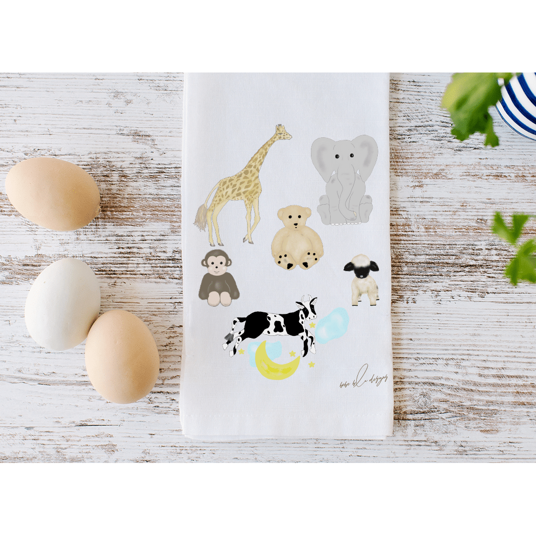 The Mothers Helper Flour Sack Tea Towel – a perfectly useful gift for any new parent. This 100% cotton, lint free towel can be a useful way to ‘clean up all baby messes!’ Its soft cotton material will make a great burb cloth or changing pad. Its ‘baby’ uses are endless! It features a giraffe, elephant, teddy bear, monkey, lamb and a cow jumping over the moon! Use the Mothers Helper towel to wrap a small baby gift for a new Mom, making it two gifts in one!