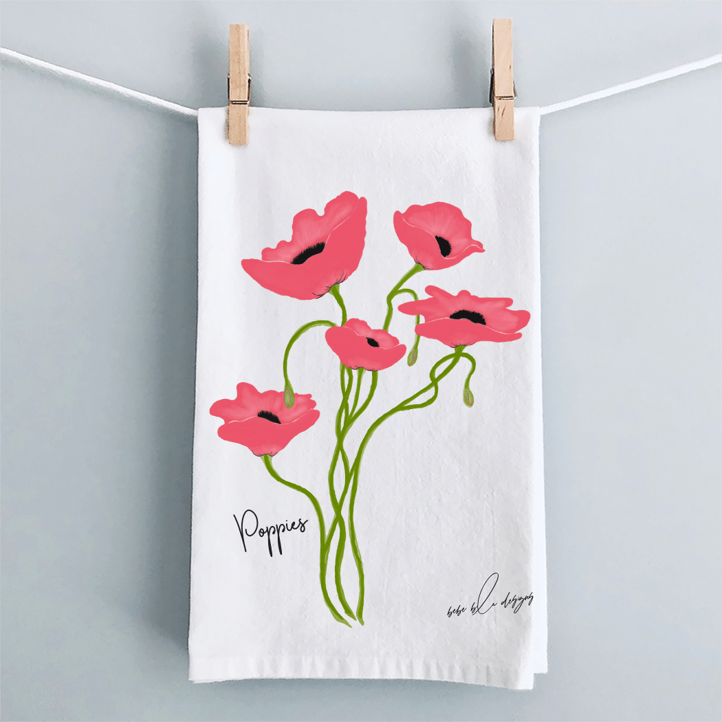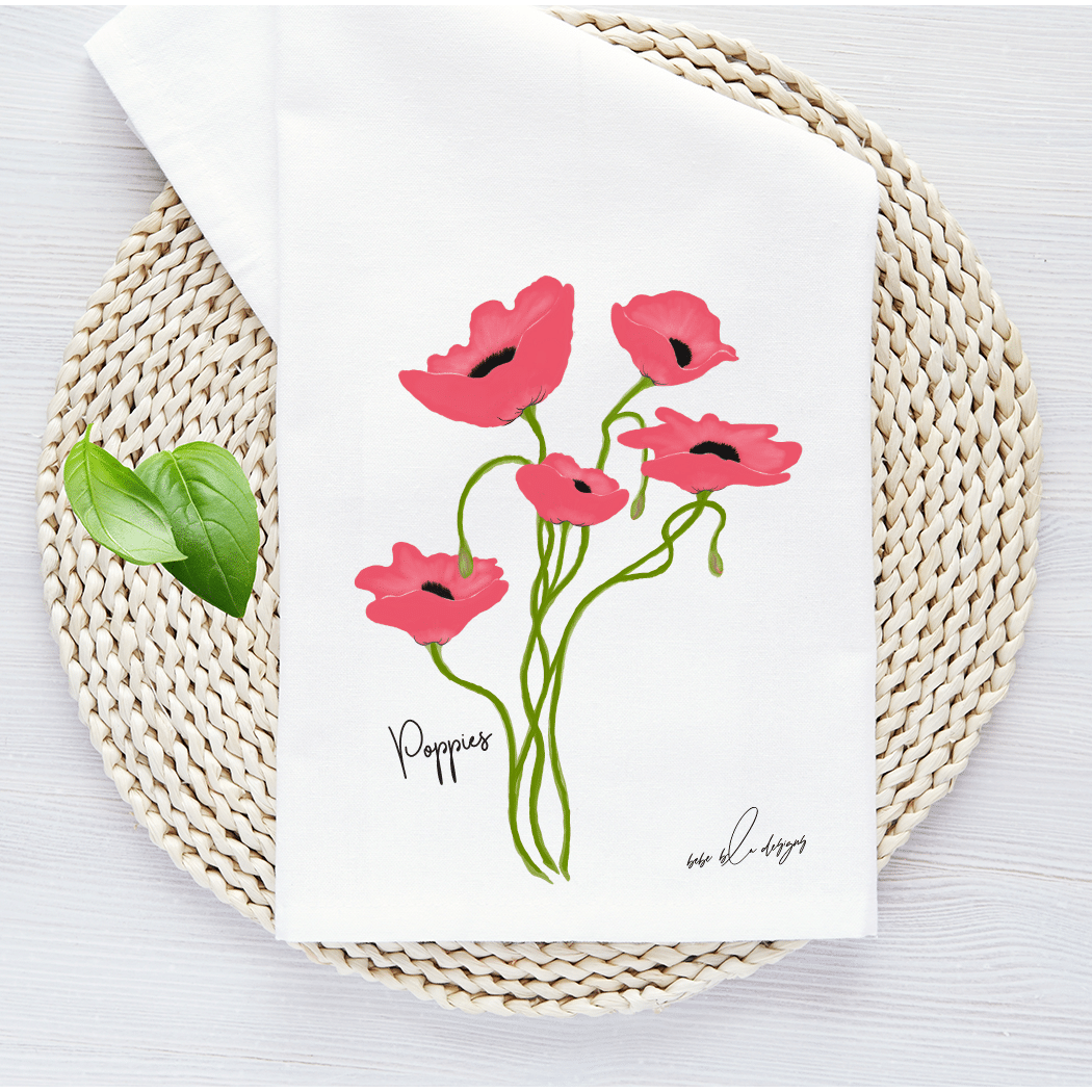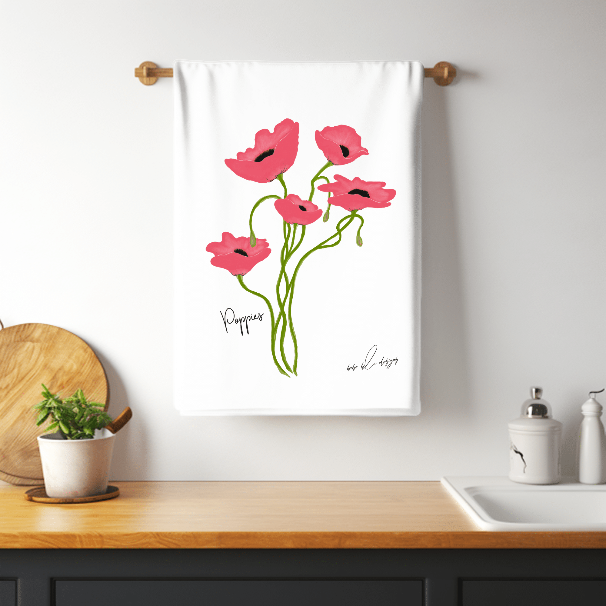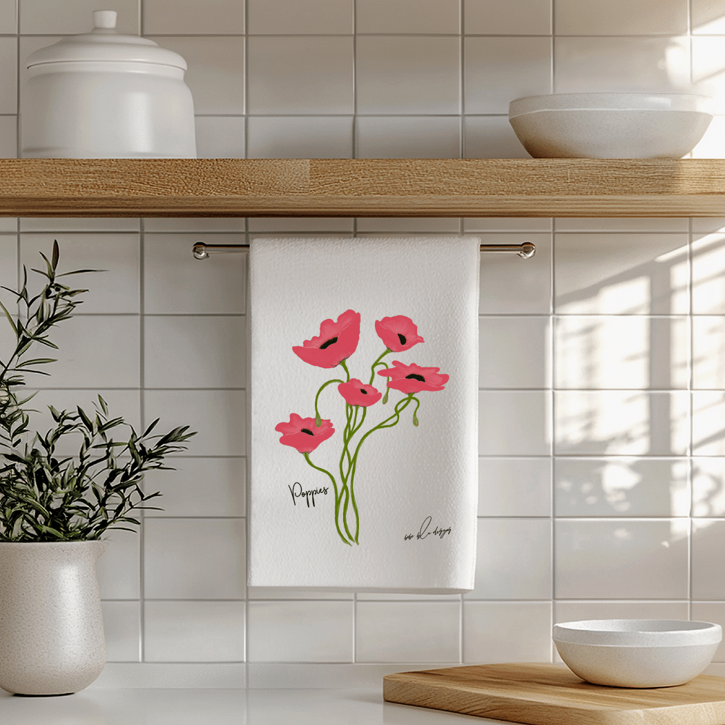 A bunch of red Poppy Flour Sack Towel will be sure to ‘cheer-up’ the room with its bright red design of poppies.