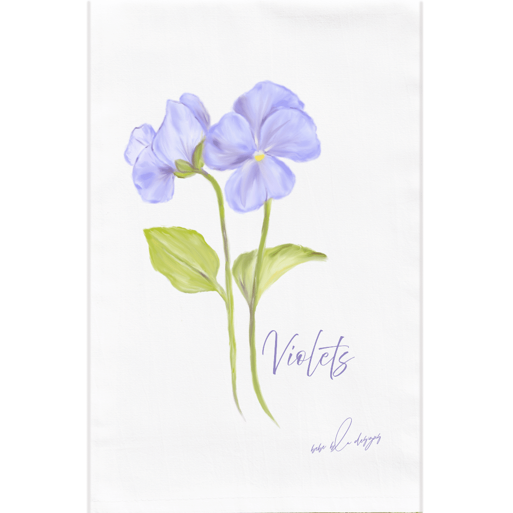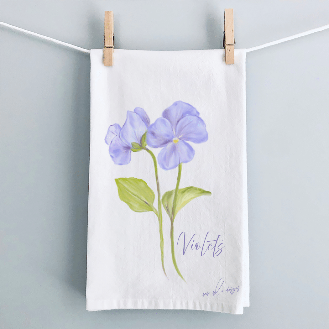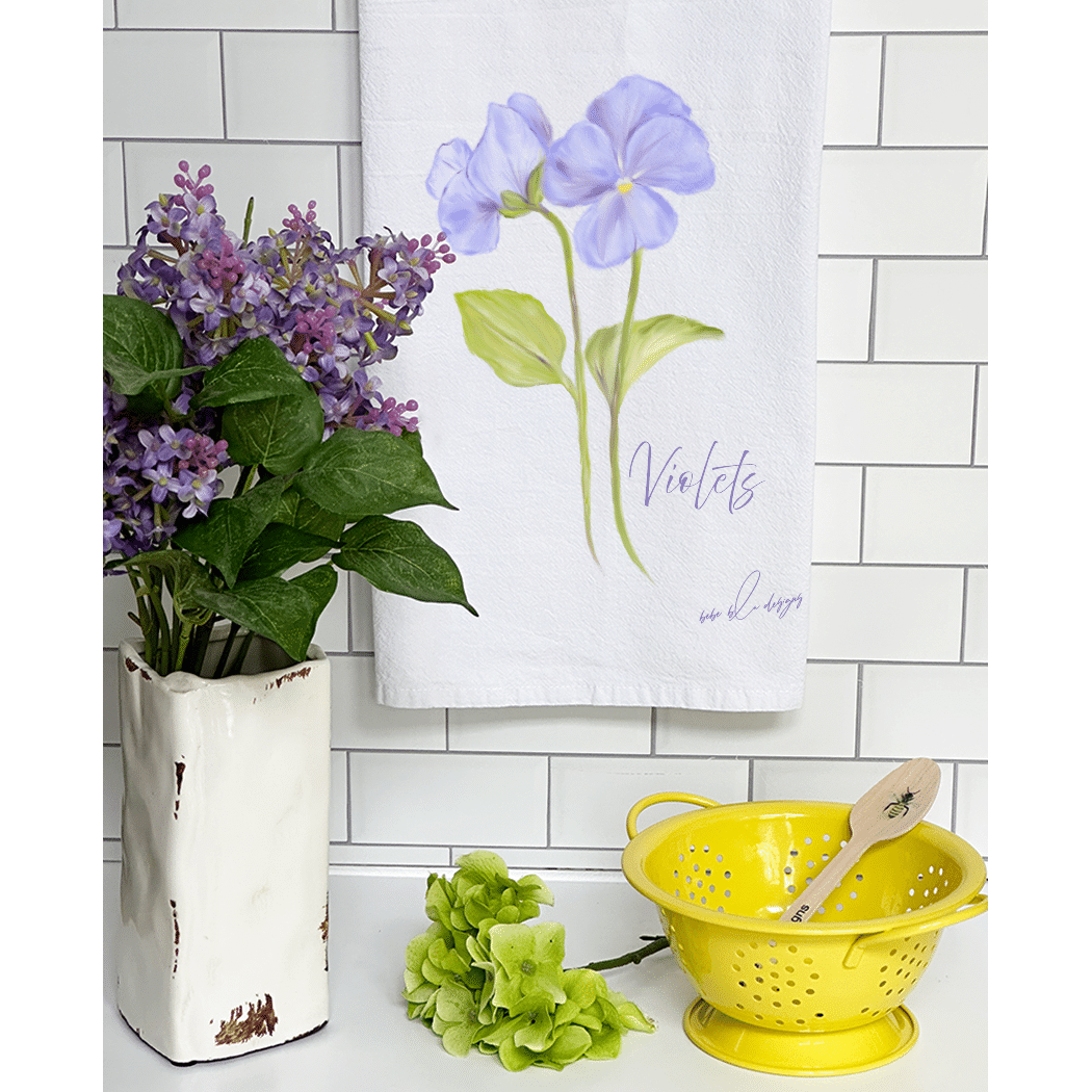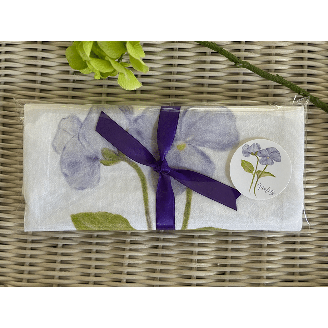 The Violets Flour Sack Tea Towel will compliment any kitchen decor.  These pretty soft purple Violets will make a wonderful Mother’s Day, Birthday, or Hostess gift.  Use flour sack towels as a gift wrap for a small gift making it two gifts in one.