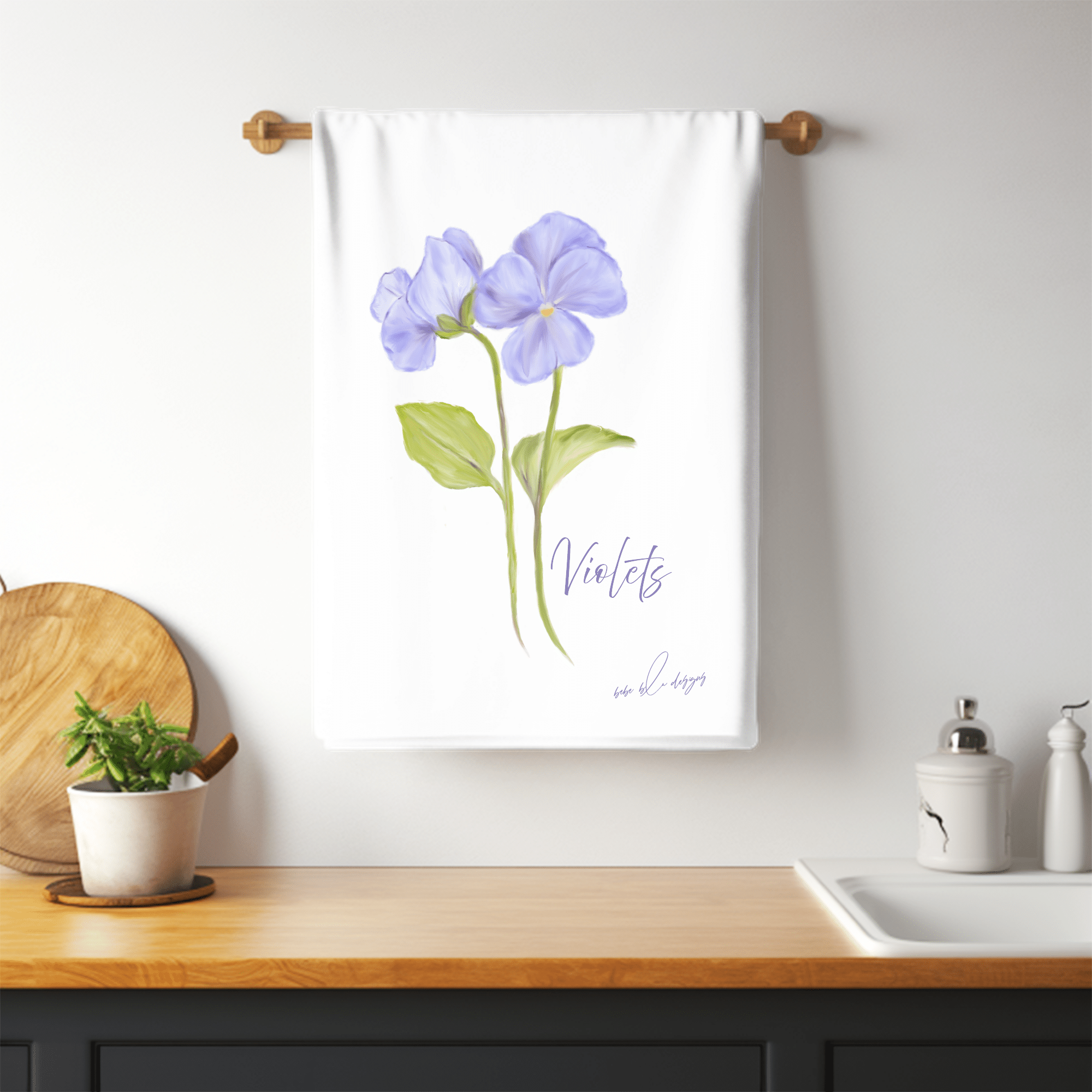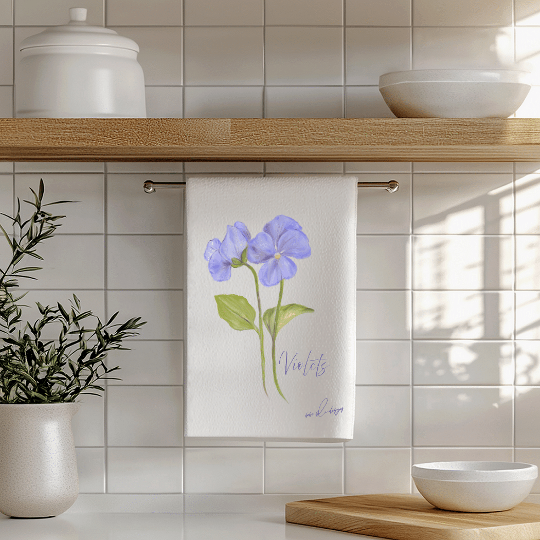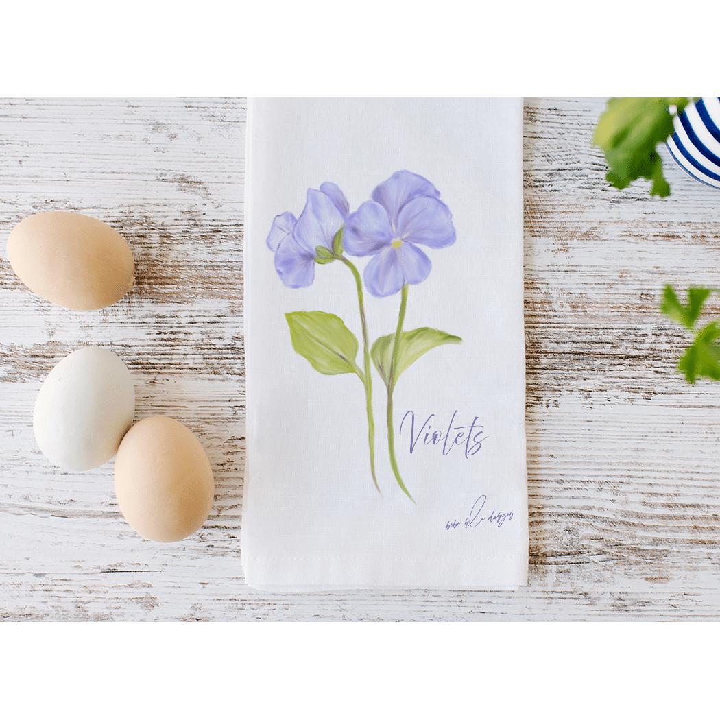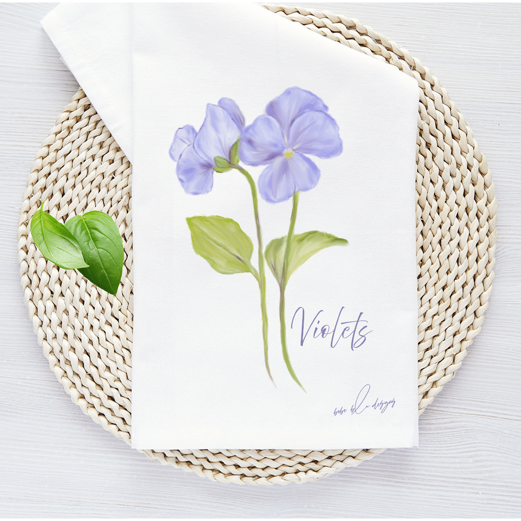 The Violets Flour Sack Tea Towel will compliment any kitchen decor.  These pretty soft purple Violets will make a wonderful Mother’s Day, Birthday, or Hostess gift.  Use flour sack towels as a gift wrap for a small gift making it two gifts in one.