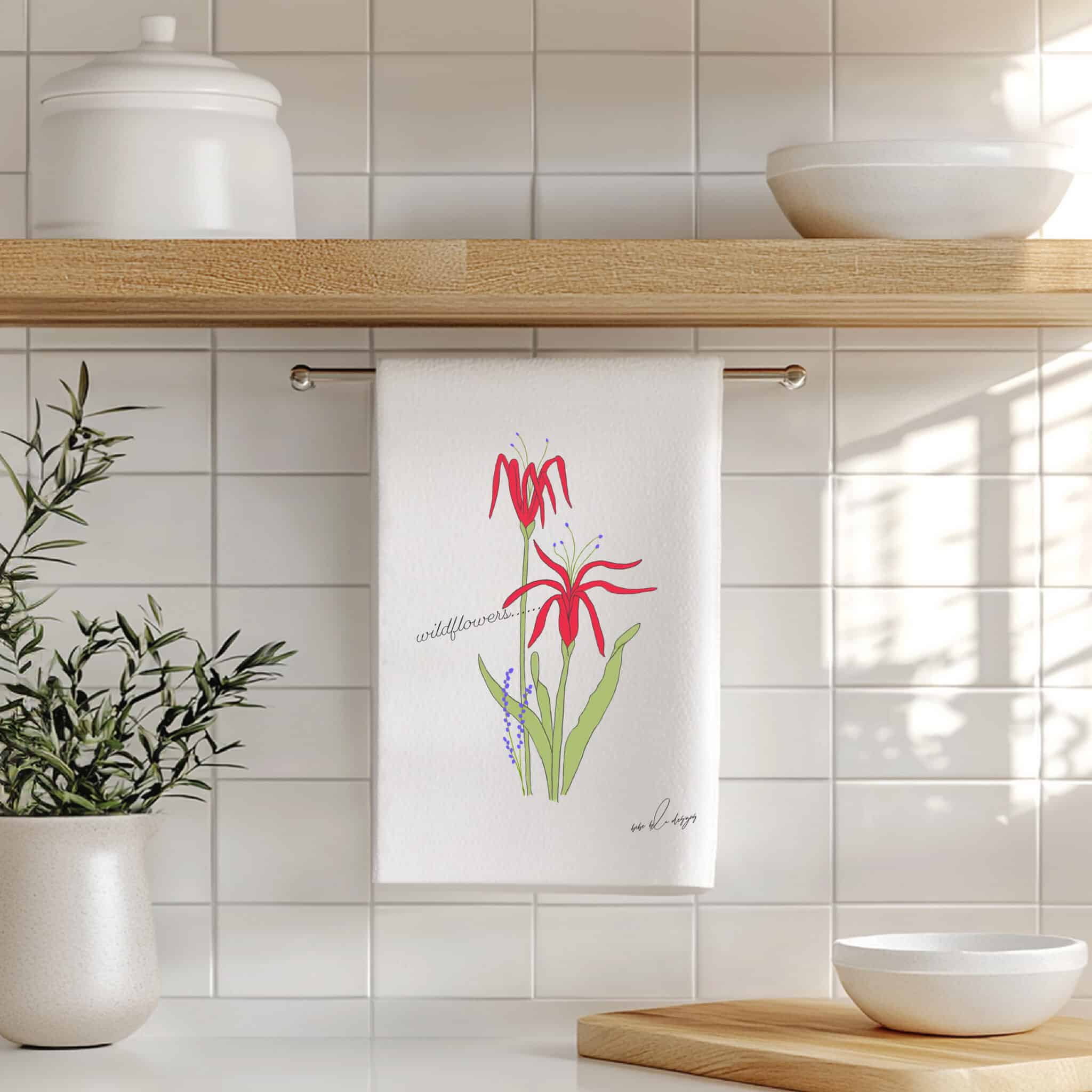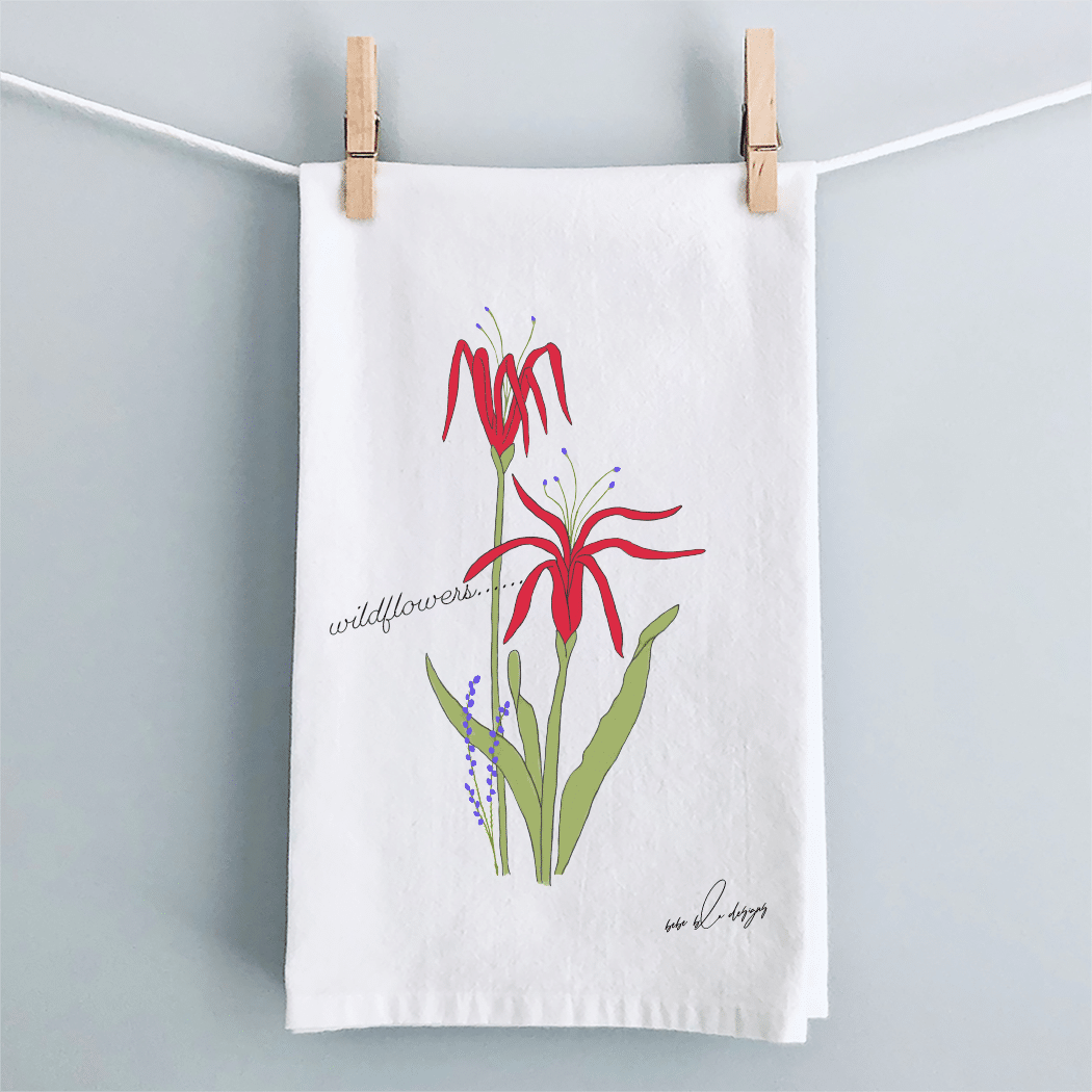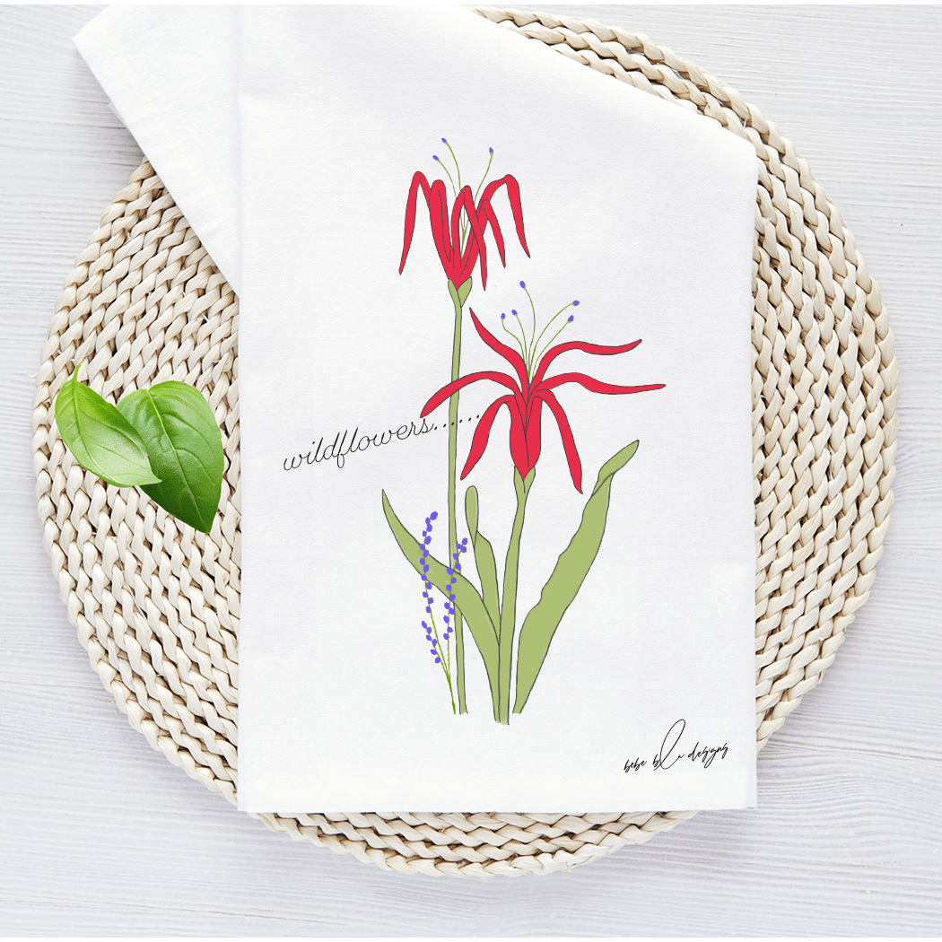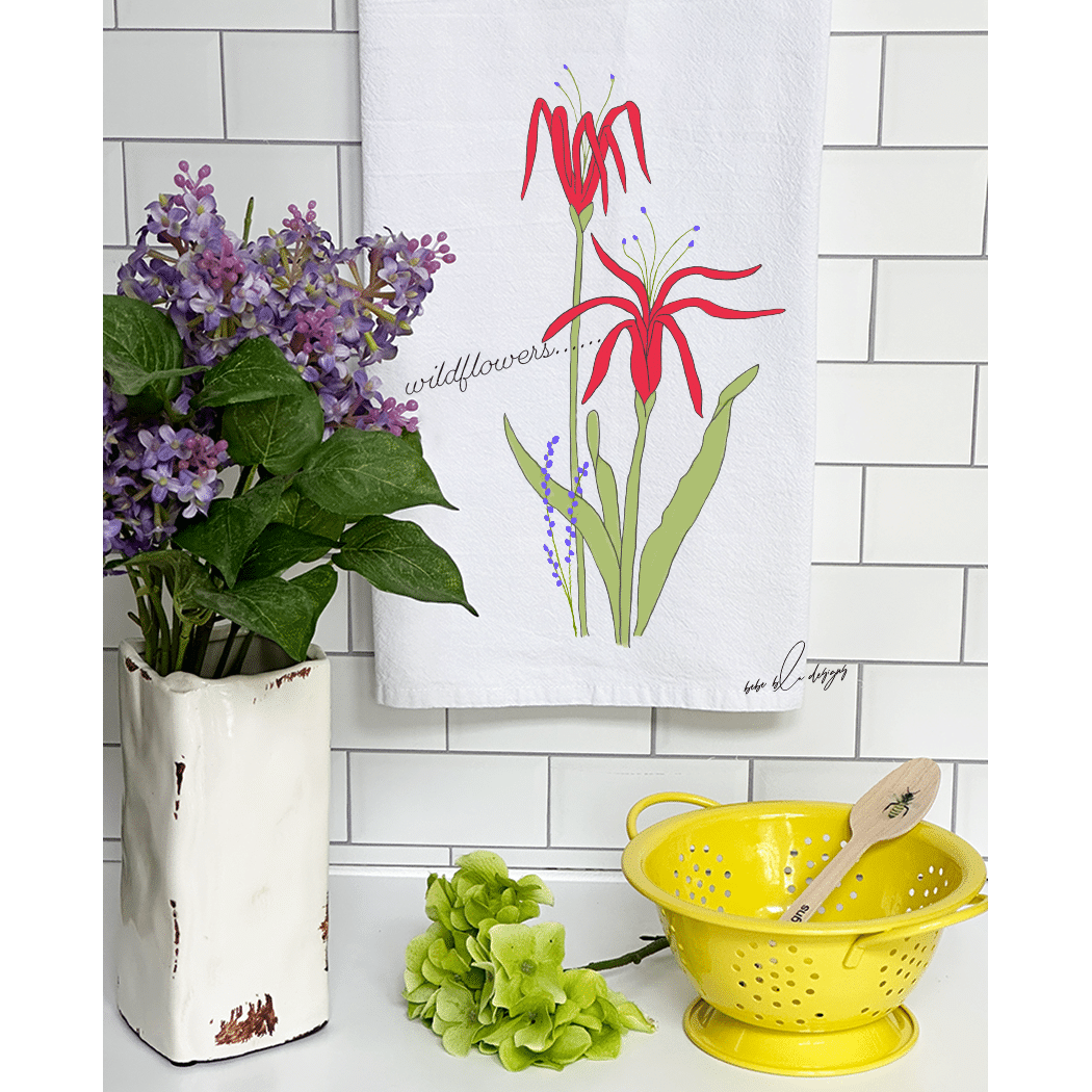 A pretty Wildflowers Flour Sack Tea Towel. The Wildflower’s colors are red with a ‘touch’ of purple. That along with the green leaves makes it a colorful addition to any kitchen decor. Perfect for any time of the year!